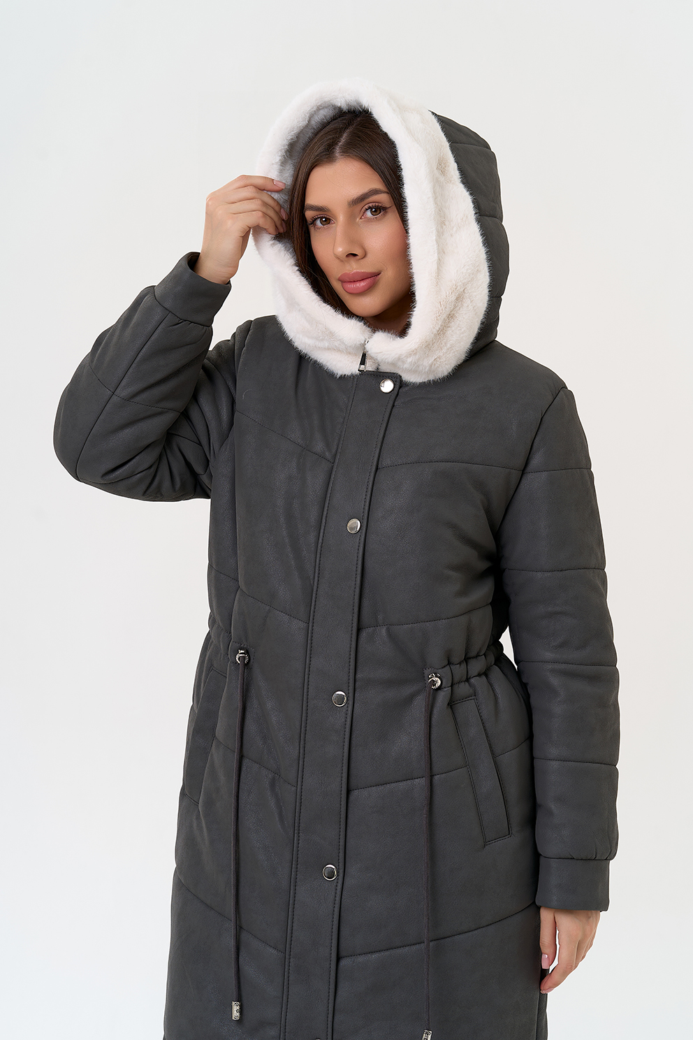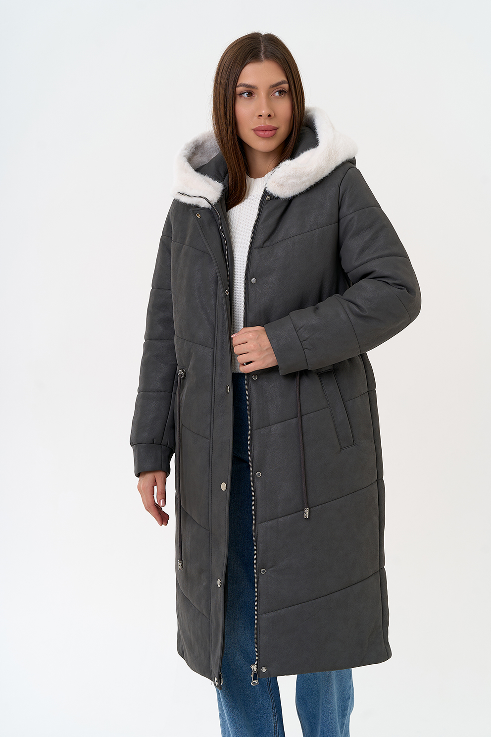 Отделка воротника - эко мех, цвет белый
